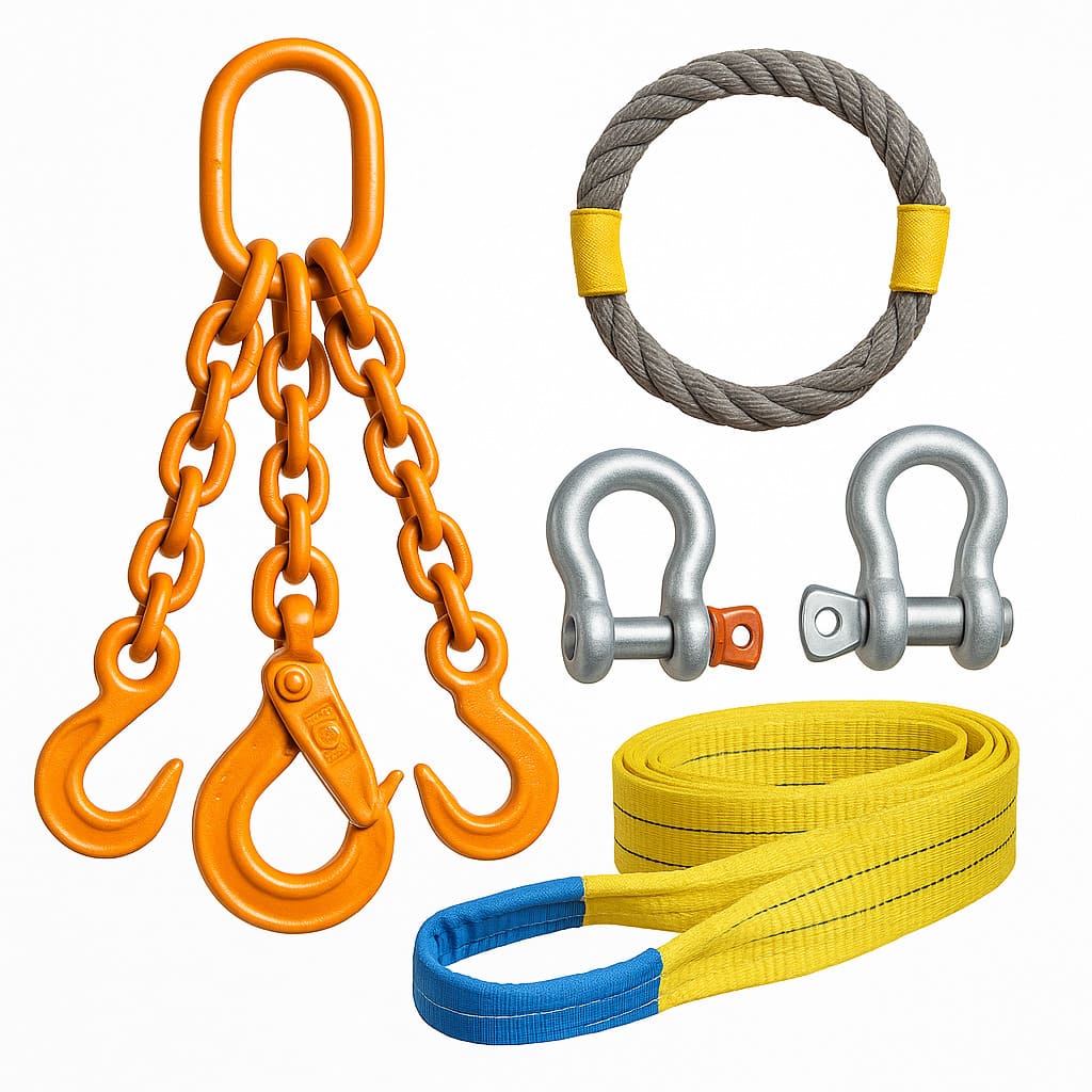 Стропы, цепи, канаты, захваты, траверсы, серьги и другие элементы, участвующие в подъёме и перемещении грузов.