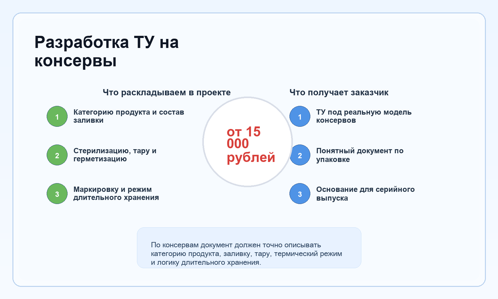 По теме «Разработка ТУ на консервы в Казани» в Ростове-на-Дону разложим оформление по шагам: что подготовить на старте, где чаще всего возникают возвраты и как пройти процесс без лишних пауз между этапами.